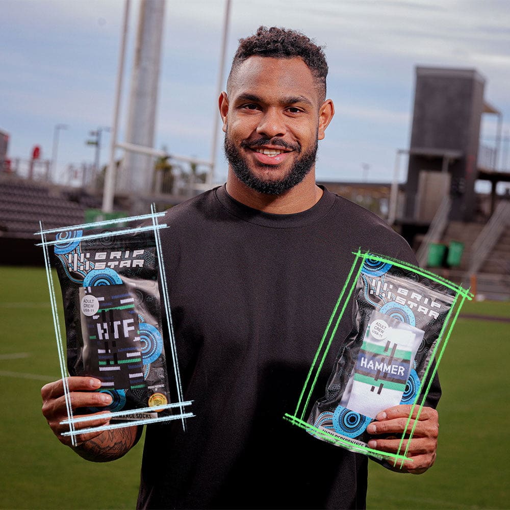 Rugby league star Hamiso Tabuai-Fidow has brought his style and power to the Grip Star Socks range in this exclusive collaboration.