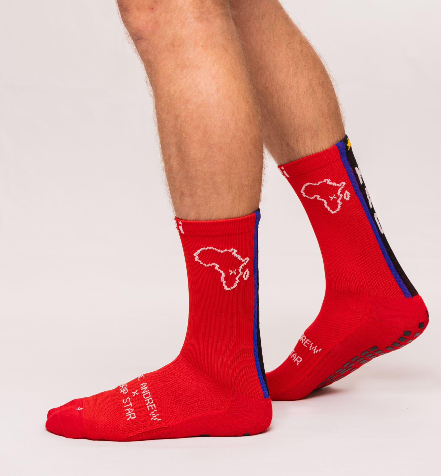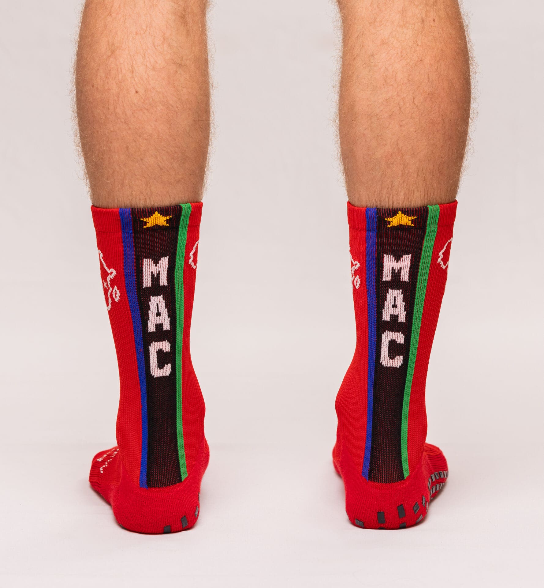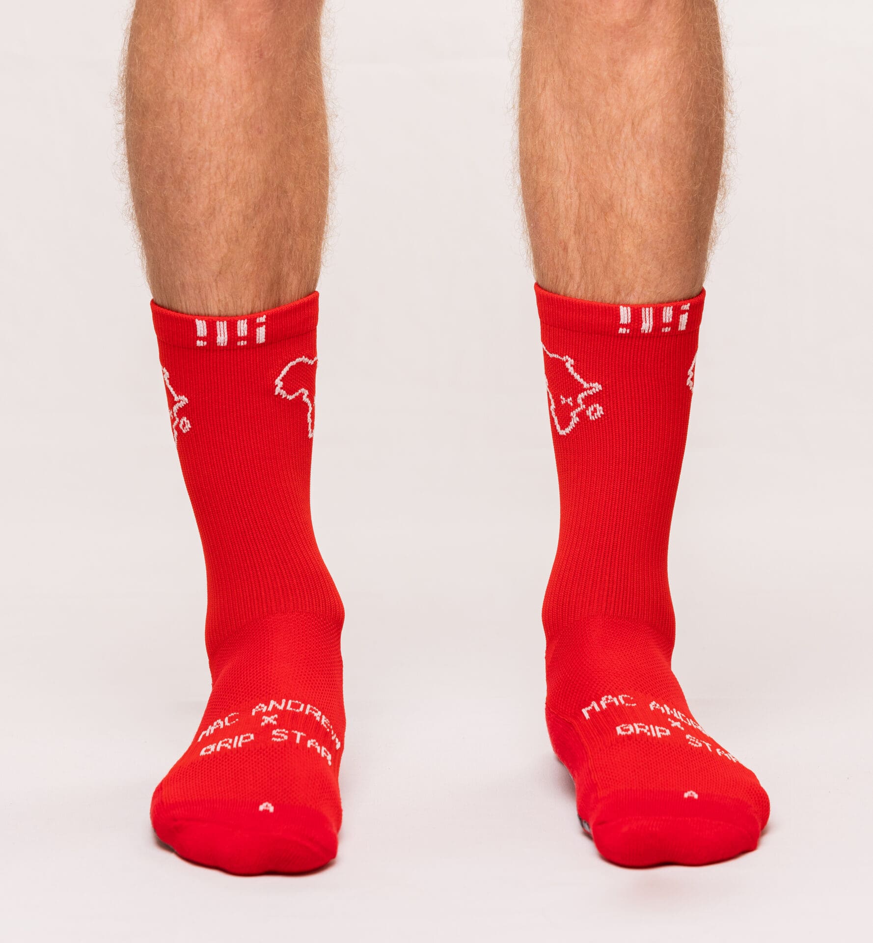 The Mac Andrew x Grip Star Crew Socks celebrate identity, journey, and performance at the highest level. Designed in collaboration with Mac Andrew, this limited-edition release fuses elite grip technology with powerful personal symbolism.