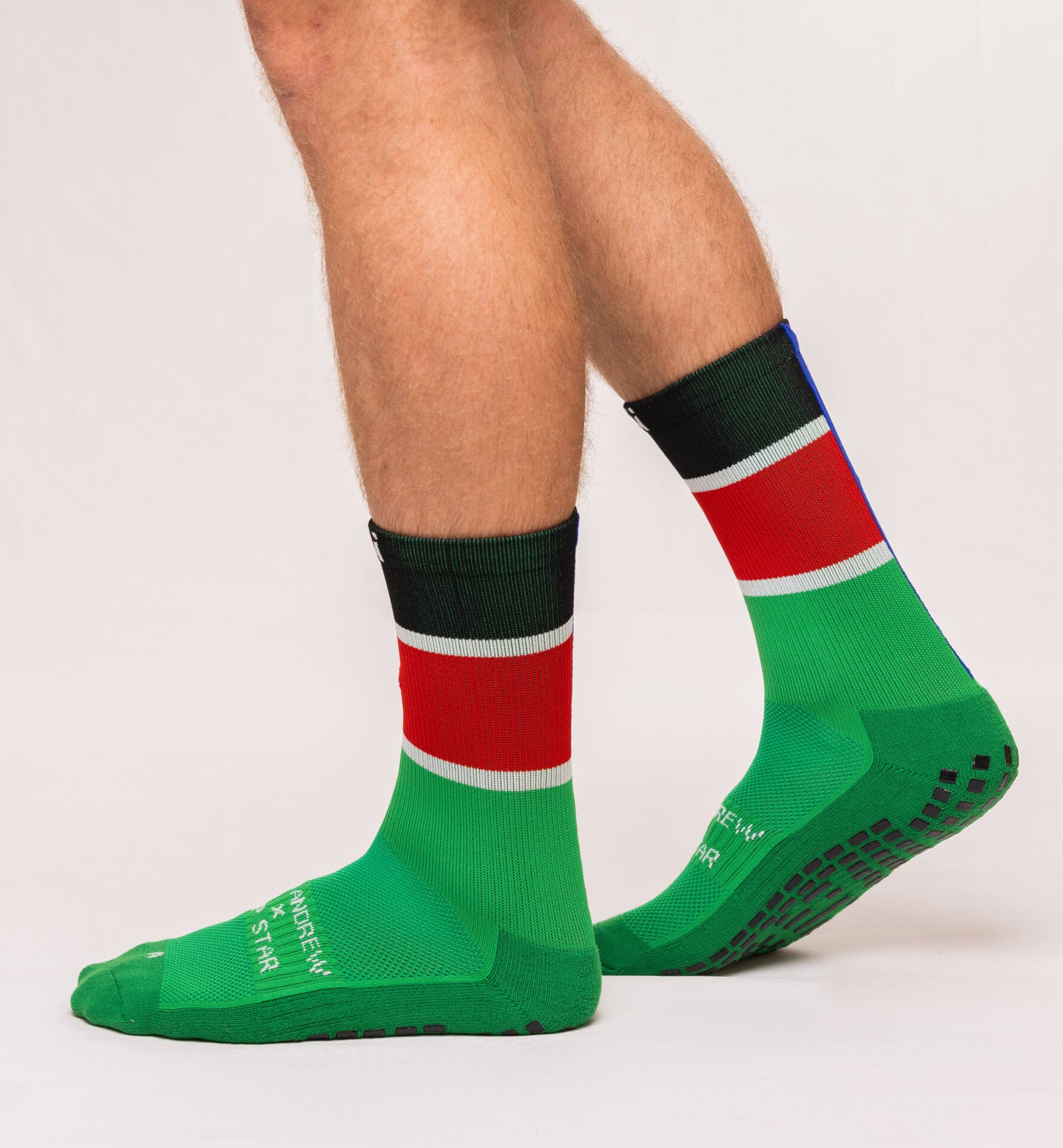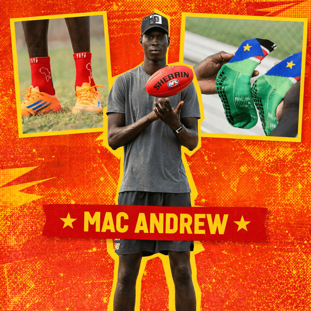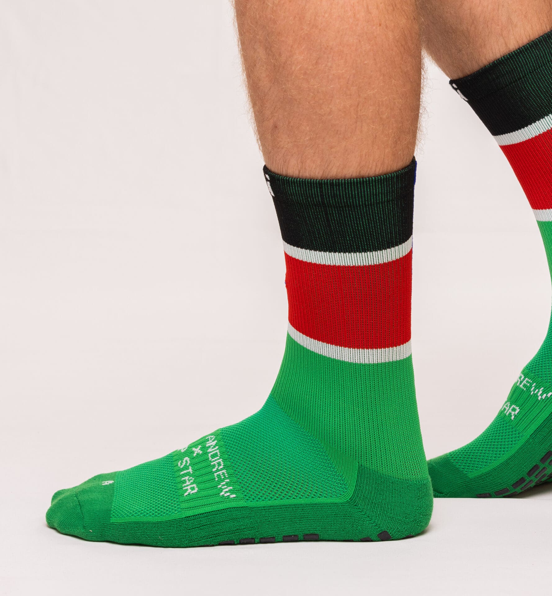 The Mac Andrew x Grip Star Crew Socks celebrate identity, journey, and performance at the highest level. Designed in collaboration with Mac Andrew, this limited-edition release fuses elite grip technology with powerful personal symbolism.